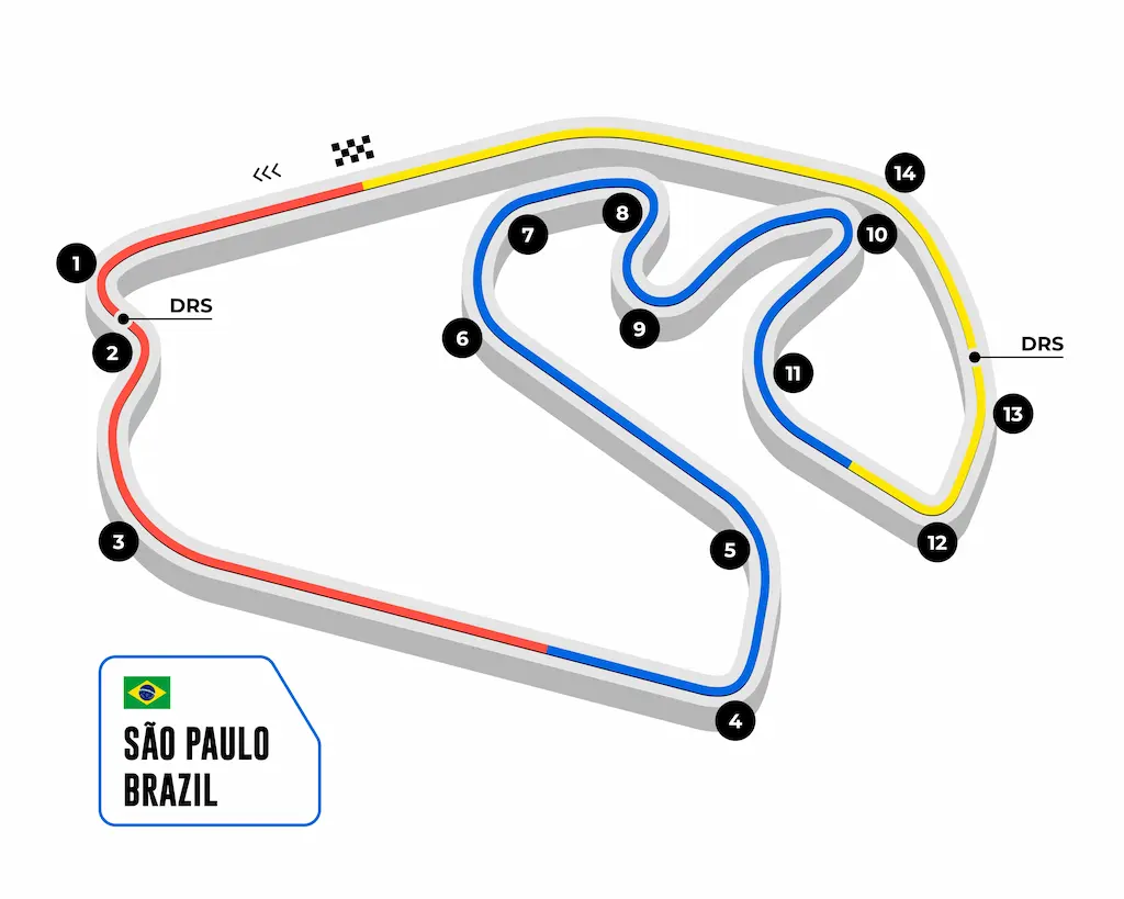 インテルラゴス・サーキットは、長さ4.309kmで、14のコーナーから成り立っています。
